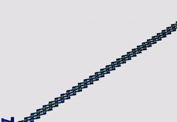 The finite element analysis revealed an important ingredient in a cobra weave stick bomb: gravity. “Unlike a frame bomb that just flies apart, the cobra weave’s strain energy actually lifts itself up off the ground,” said Allegrette. “Then the sticks fall to the ground as the reaction moves forward. That’s why it looks like a wave, and that’s also why introducing gravity in the simulation was so important.”