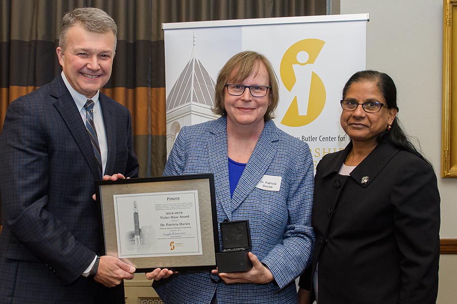 The Violet Haas Award recognizes individuals, programs or departments at Purdue that have facilitated the advancement of women in hiring, promotion, education and salary, or have enhanced a positive professional climate for women at the University. It was established in 1990 by the Council on the Status of Women (CSW), an organization that sought to provide a voice for all women at Purdue University. The award is now administered by the Susan Bulkeley Butler Center for Leadership Excellence. The award is named for Violet Haas, an electrical engineering professor from 1962 to 1986, who was instrumental in the early development of the Purdue chapter of the Society of Women Engineers.
