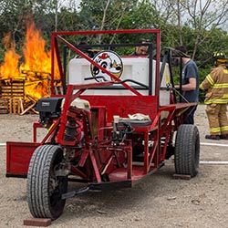 A team of Purdue engineers has created the FirePUP, a three-wheeled vehicle designed to serve as a firefighting engine in Africa. In addition to pumping 200 gallons of water, the FirePUP can travel over all terrains, a necessity for areas in Africa that have few paved roads.