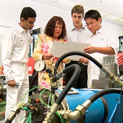 Congratulations to Monika Ivantysynova, who will receive an honorary doctorate from Lappeenranta University of Technology (LUT) in Finland. The university specifically cited Ivantysynova's "valuable contribution to the development of mechanical engineering research at LUT," and her leadership of organizations "that evaluate Finnish mechanical engineering research." Ivantysynova is director of Purdue's Maha Fluid Power Research Center and a professor in both the School of Mechanical Engineering and the Department of Agricultural and Biological Engineering. She came to Purdue in 2004. Her research involves developing hydraulic systems that eliminate the use of valves now needed to control the flow of hydraulic fluid, promising to lead to more compact, lightweight hydraulic technology that use less energy than conventional systems.