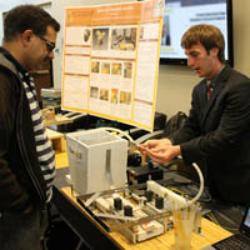 Mechanical engineering students completing a senior design course will demonstrate a diverse collection of inventions, from a hovering skateboard to a heart-assist device and a foldable wing for a flying car. Their work was displayed during the School of Mechanical Engineering Thomas J. and Sandra H. Malott Innovation Awards competition.