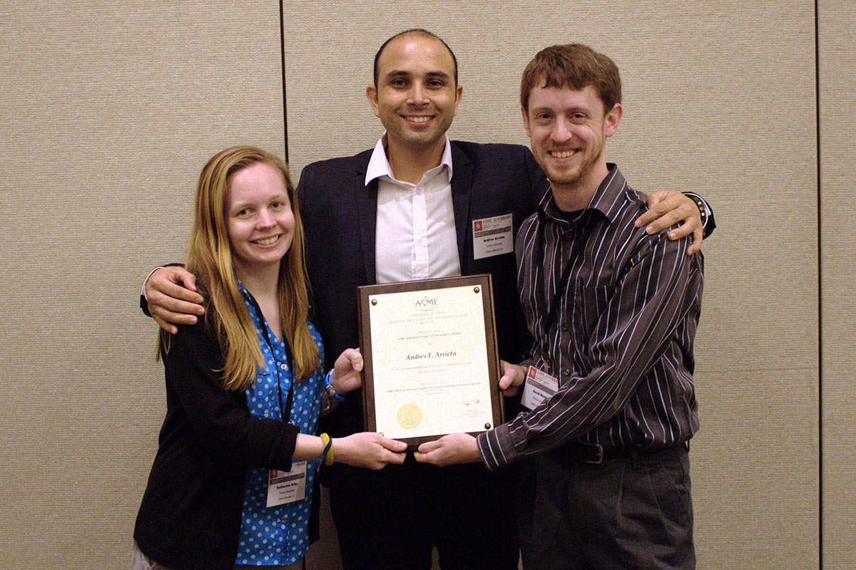 Andres Arrieta, assistant professor of mechanical engineering, received the ASME Gary Anderson Early Achievement Award for: “notable contributions of a young researcher in his or her ascendancy whose work has already had an impact on the fields of Adaptive Structures and Material Systems.”