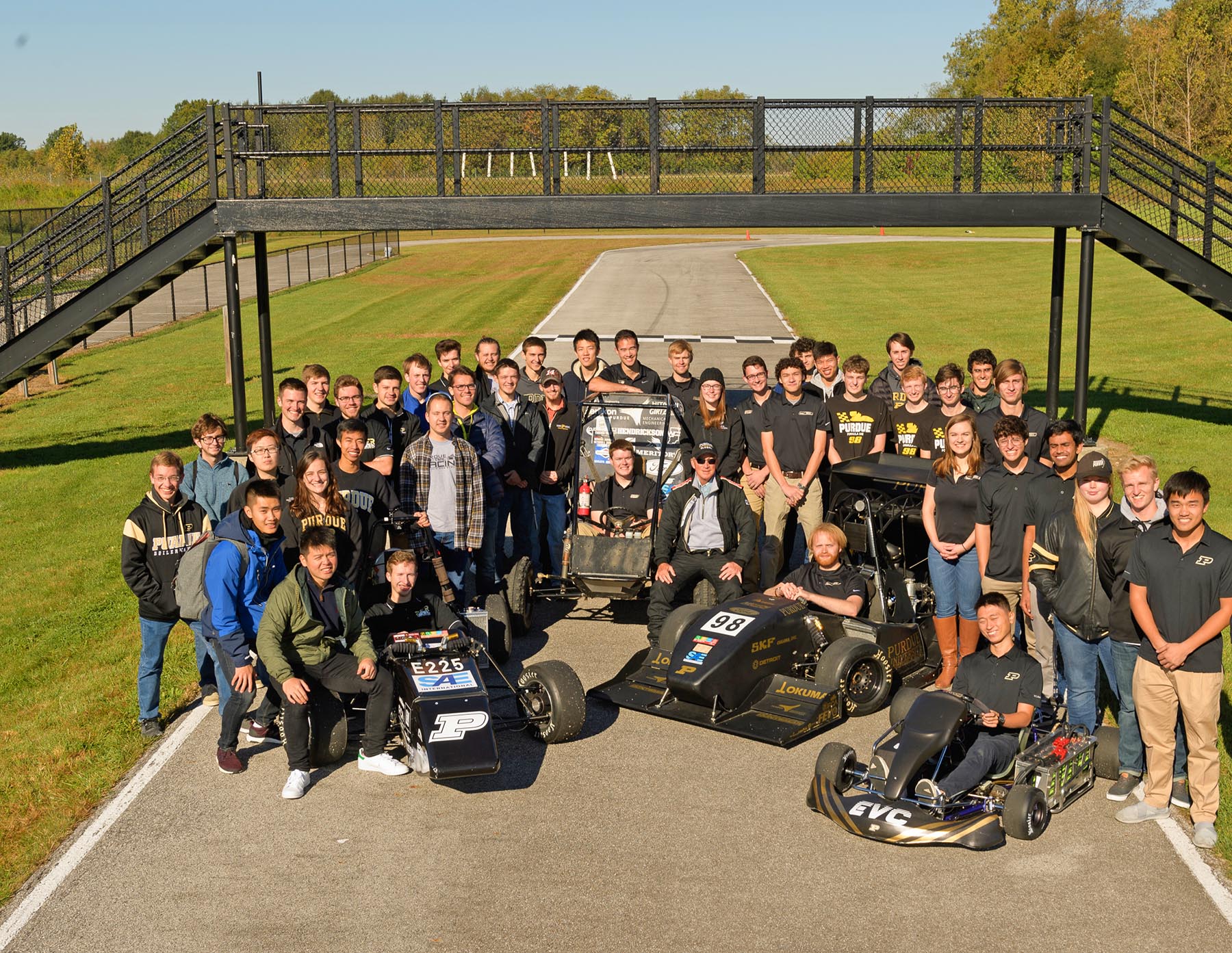 However, the cars test-driven by President Daniels are about more than just going fast. Every year, Purdue Engineering students design and build these vehicles from the ground up, competing against other universities in events organized by the Society of Automotive Engineers (SAE). In addition to the Electric team, the Baja team builds a single-seat off-road vehicle; and the Formula team builds an internal-combustion mini-Formula race car which goes from 0 to 60 mph in less than four seconds. The teams attract hundreds of students from Mechanical Engineering, Electrical and Computer Engineering, and Aeronautics and Astronautics. They also have business teams to organize budgets and recruit sponsors.