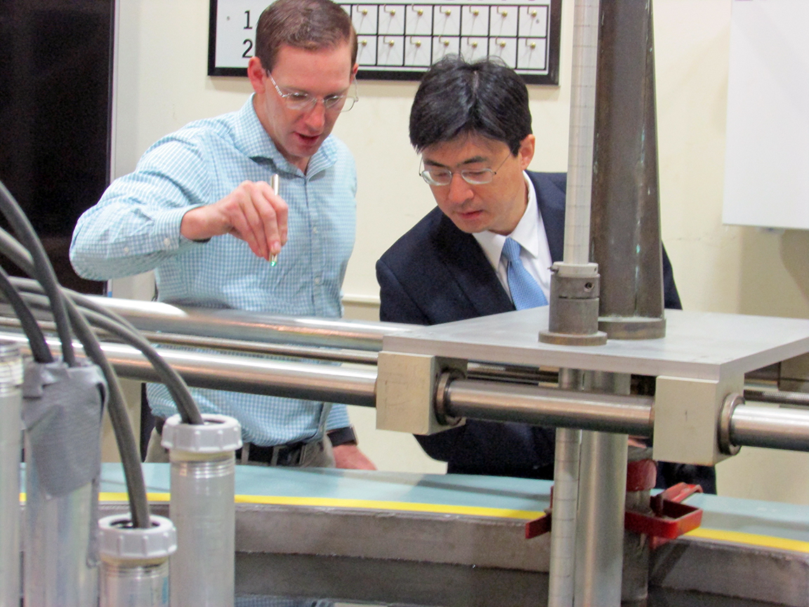 Photo (left): Purdue University College of Engineering Dean Mung Chiang tours PUR-1 with Reactor Supervisor and Assistant Lab Director Clive Townsend.