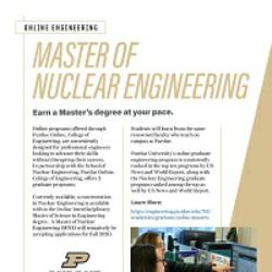 The School of Nuclear Engineering at Purdue University is excited to announce the new online Master of Nuclear Engineering degree program, to be launched in Spring 2021. We are happy to provide this continuing education opportunity to those of you who are seeking advanced knowledge in nuclear engineering that can be achieved at your pace. A great opportunity to learn from our world-renowned faculty!