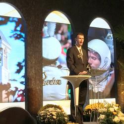 School of Nuclear Engineering student Andrew Adelsperger recently served as emcee at the 2016 Dean's Homecoming Dinner. The event, held on October 13 in the France A. Cordova Recreational Sports Center Feature Gym, was hosted by Dr. Leah Jamieson, the John A. Edwardson Dean of Engineering and Ransburg Distinguished Professor of Electrical and Computer Engineering.
