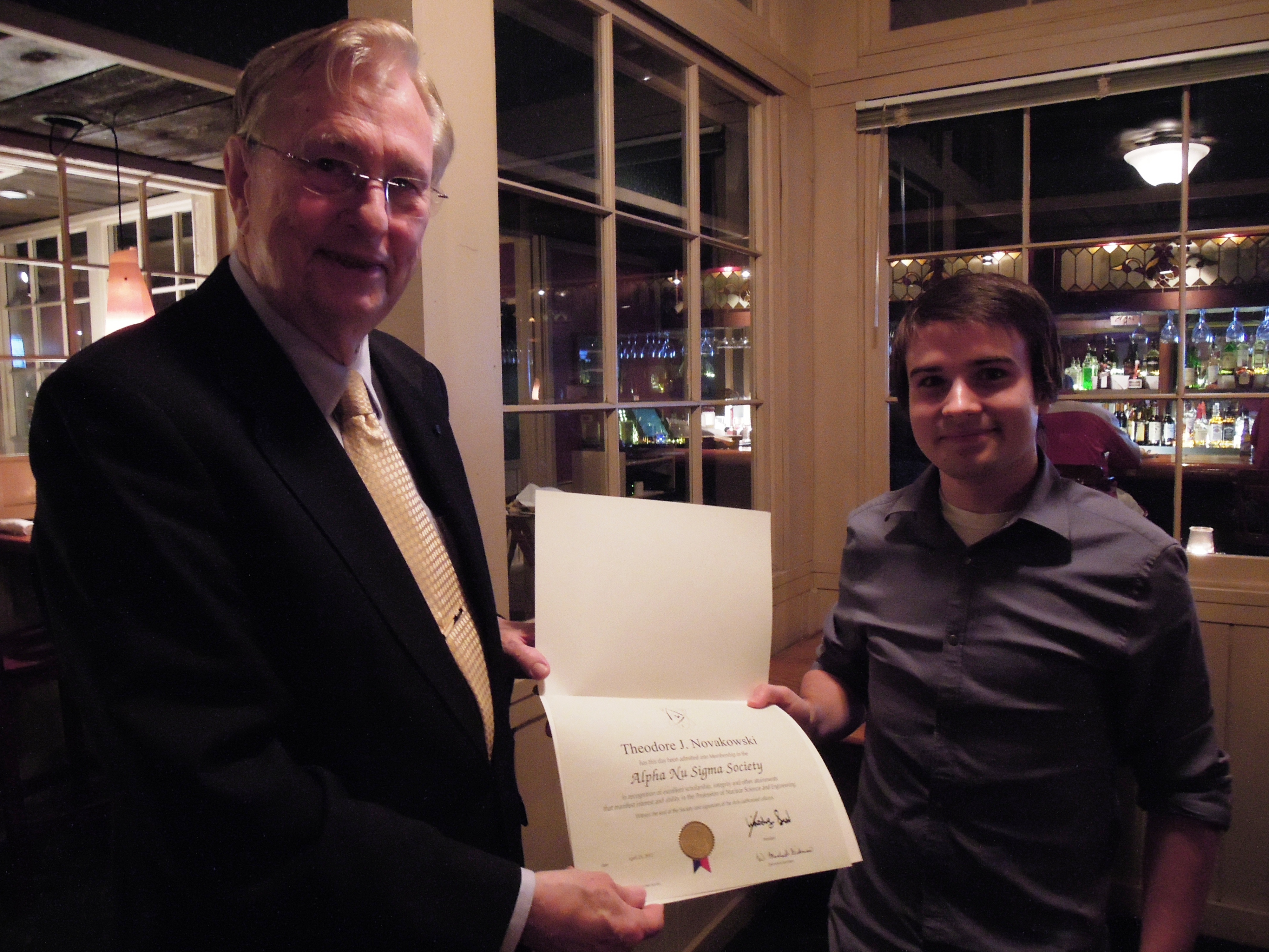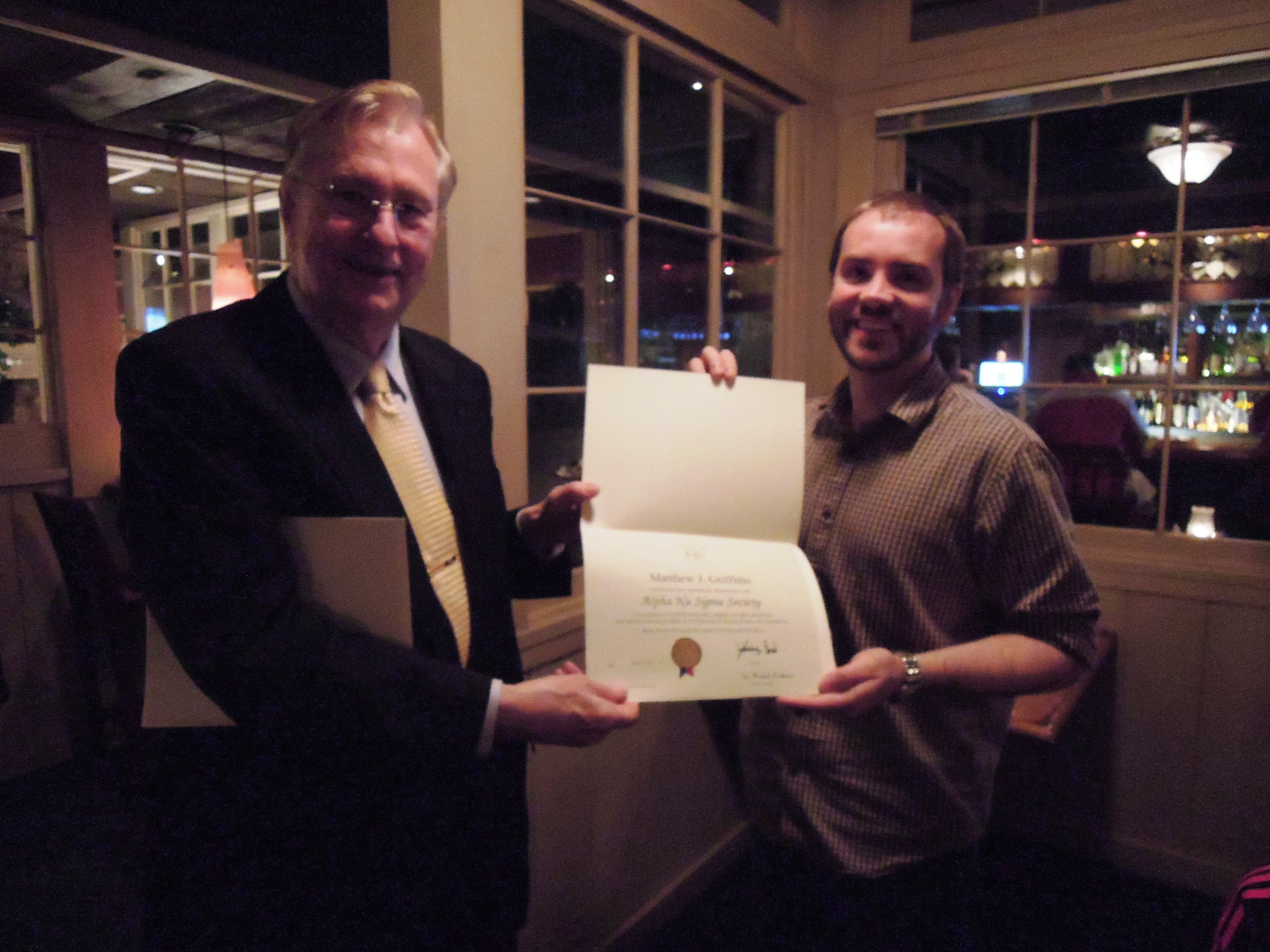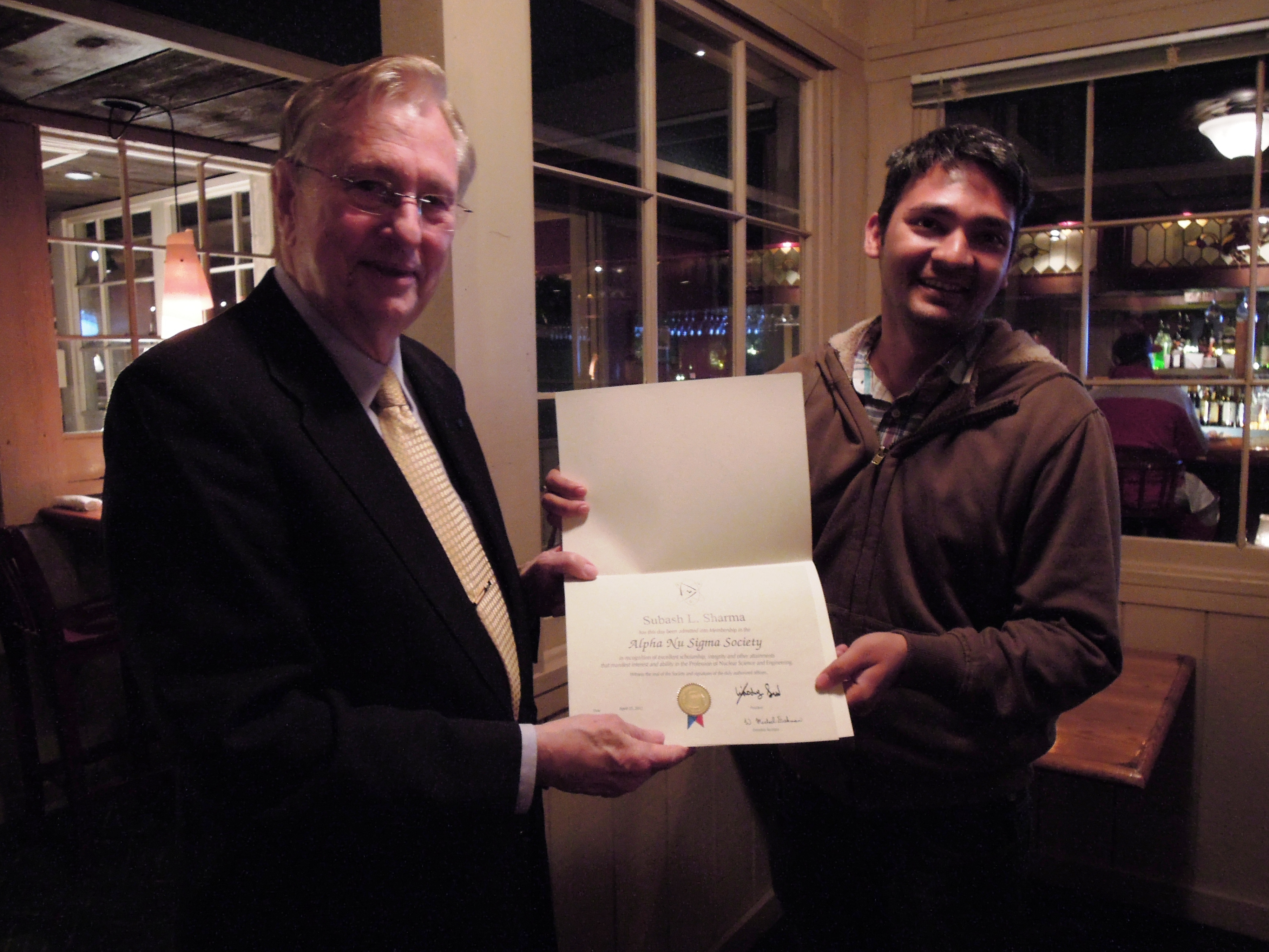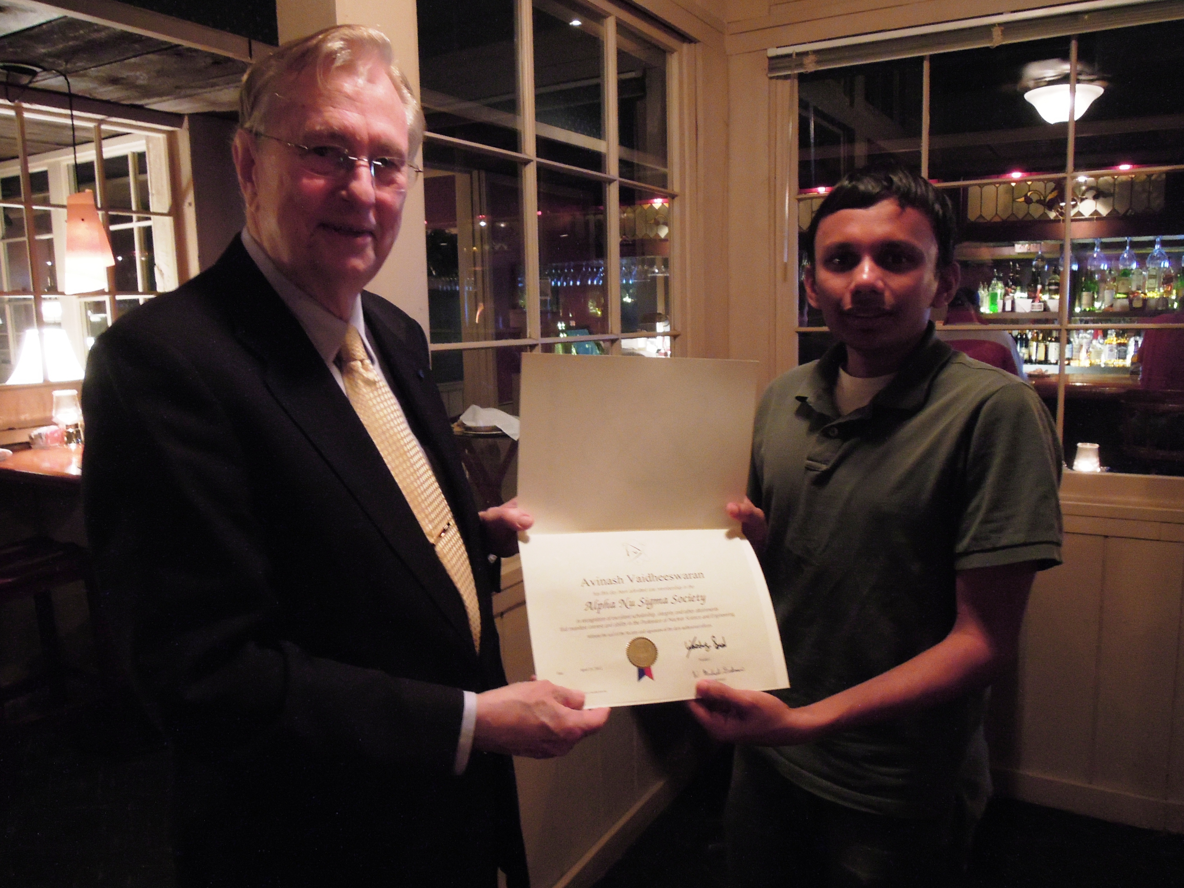 On April 25, 2012 Alpha Nu Sigma held their induction banquet to acknowledge those newly selected members for their academic success. Each year members are selected for those who meet specific class-ranking criteria. Dr. Arden Bement presented each member their certificate at the banquet. From Purdue, we have three distinguished faculty members of Alpha Nu Sigma: Drs. Bement, Clikeman and Sesonske