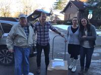 The last dozen boxes sent by PGSG were loaded on November 25. Pictured are Mr. Decker; Alex Hagen, co-chair of PGSG's Advancement Committee; Christina Weiler, co-chair of PGSG's Advancement Committee; Tricia Olinger, Graduate Student Center.