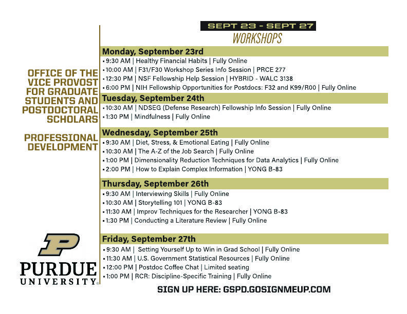 You can also find a complete list of our currently scheduled workshops at: https://www.purdue.edu/academics/ogsps/professional-development/workshops/index.php. Please also see attached.