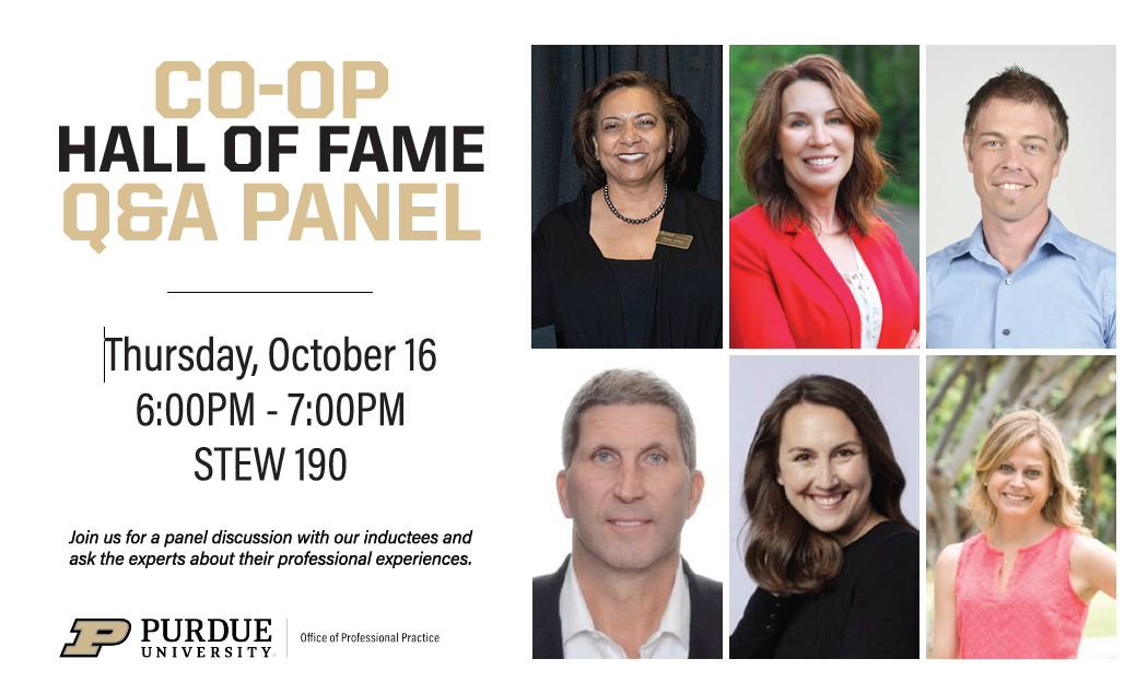 Join us for a Q&A Panel with distinguished alumni from the Co-op Hall of Fame! Inductees have significant achievements and contribute to Purdue student success. This is a great opportunity to network with some of Purdue's top achieving alumni who serve as founders and executives.