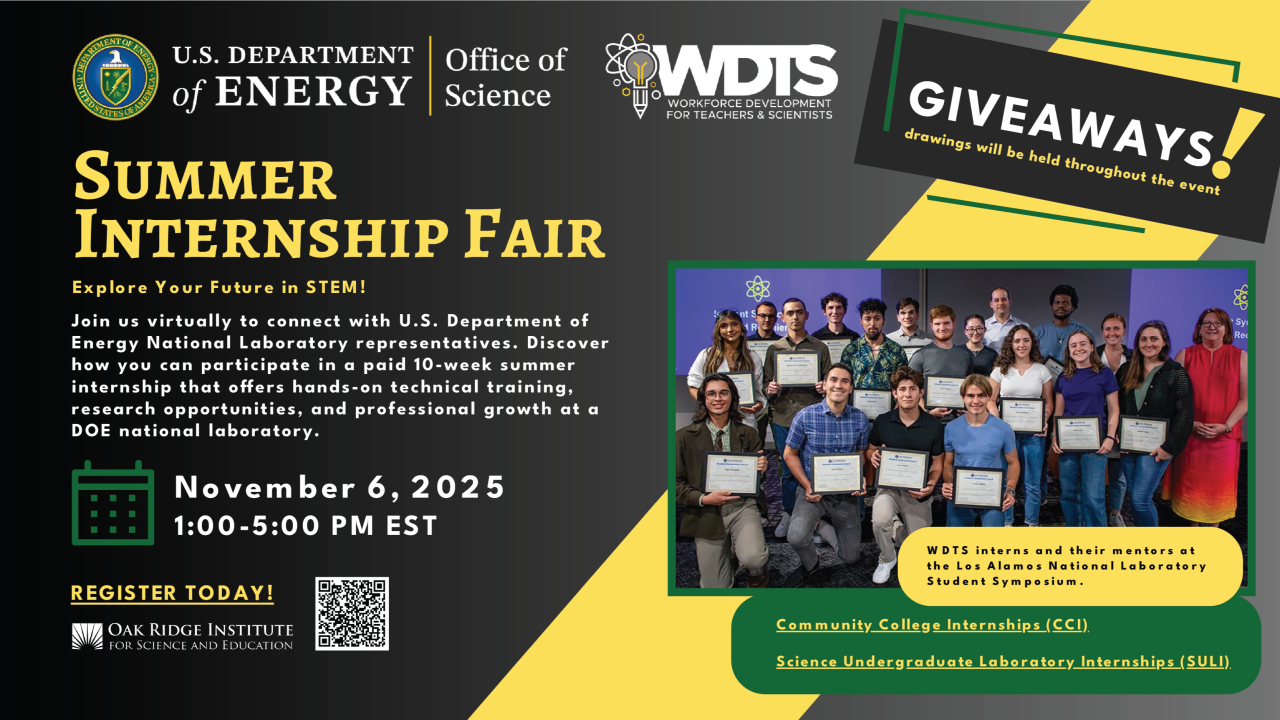 On November 6th, 2025 the U.S. Department of Energy is hosting an online Internship Fair for the summer of 2026. See more information on the flyer. Register here: https://lnkd.in/exmJrdMU